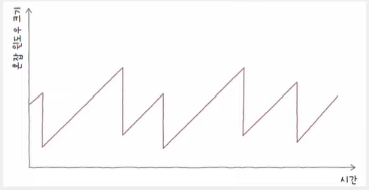 - 혼잡 윈도우 값이 계속 증가하다가,