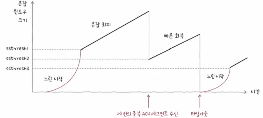 | 세 번의 중복 ACK 발생 | (빠른 재전송 후) 빠른 회복 수행 |