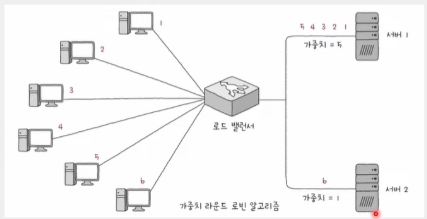 - 가중치 라운드 로빈 알고리즘(weighted round robin algorithm)