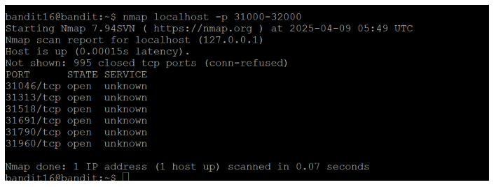 근데 bandit16의 비밀번호를 입력해도 KEYUPDATE 알람이 뜨고 진전이 없다...