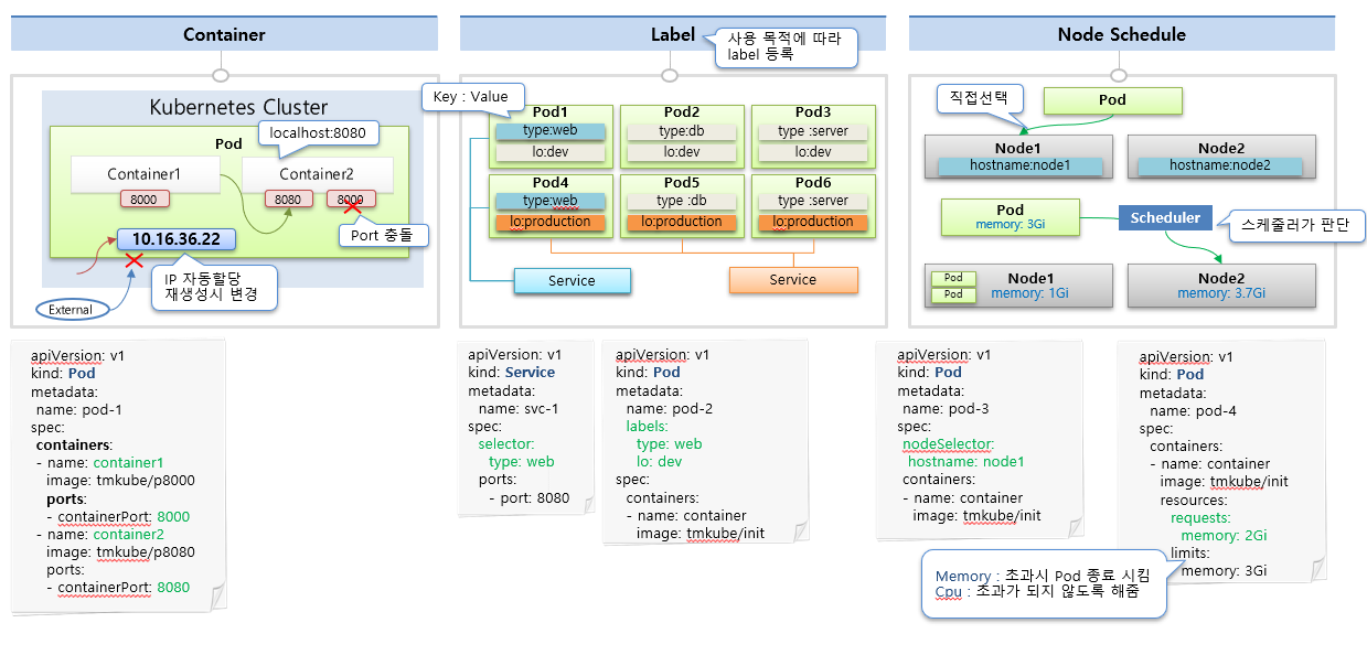 - 구조: 'Key'와 'Value'가 한 쌍으로 구성되며, 하나의 파드에 여러 개의 라벨을 붙일 수 있습니다.