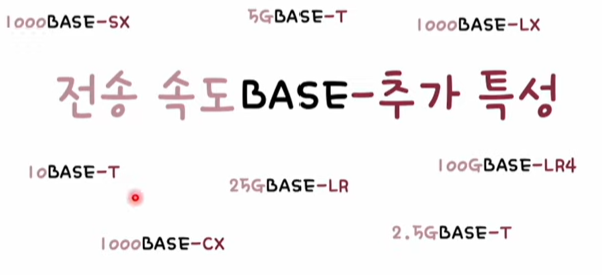 - BASE는 베이스밴드(BASEband)의 약자로, 변조 타입(modulation type)을 의미